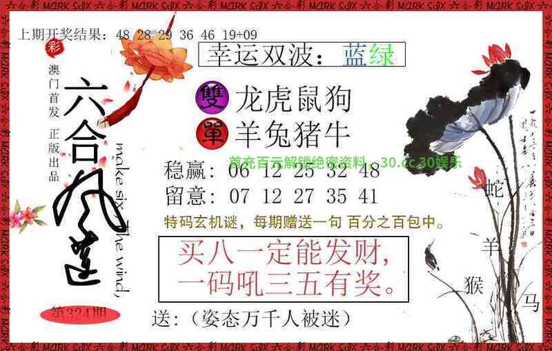 325期:七肖【鸡牛羊马虎蛇猴】开:發00准